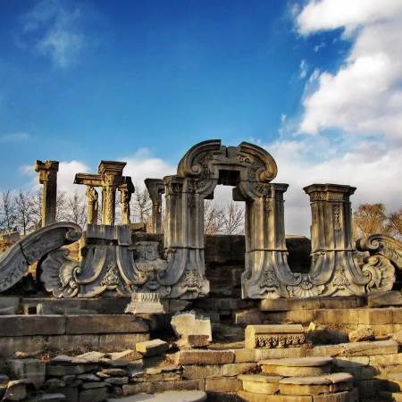 1860年10月7日,英法联军闯进圆明园后,军官和士兵们都成群打伙冲上前去抢劫园中的金银财宝和文化艺术珍品。为了消赃灭迹,英国全权大臣额尔金在英国首相帕麦斯顿的支持下,下令烧毁圆明园。大火连烧3昼夜,使这座世界名园化为一片废墟。