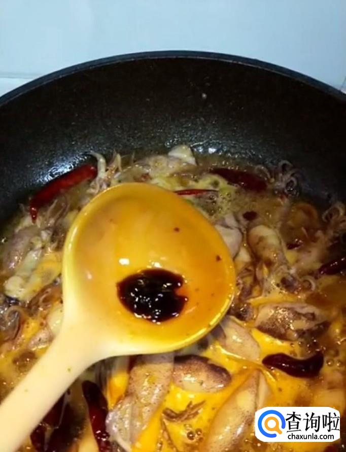 最后大火收汁,放入少许的红油,麻油,香油调味