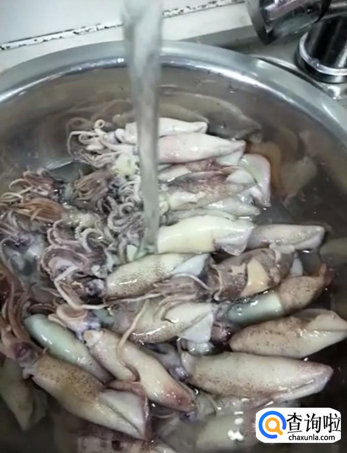 首先,我们将墨鱼仔放在凉水里面冲洗干净,备用
