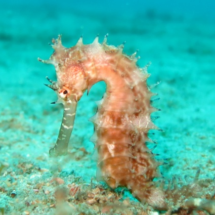 海马尾部的构造和功能与其他鱼类迥异。栖止时的海马,利用尾部具有卷曲的能力,使尾端得以缠附在海藻的茎枝上。故海马多栖息在深海藻类繁茂之处。游泳的姿态也很特别,头部向上,体稍斜直立于水中,完全依靠背鳍和胸鳍来进行运动,扇形的背鳍起着波动推进的作用。