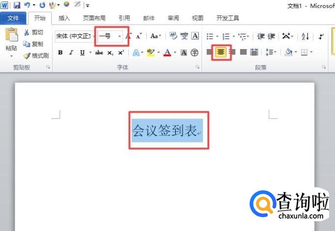 首先,我们打开我们电脑上面的word,之后我们输入会议签到表,然后我们将字体设置居中,然后我们将字号设置为一号;