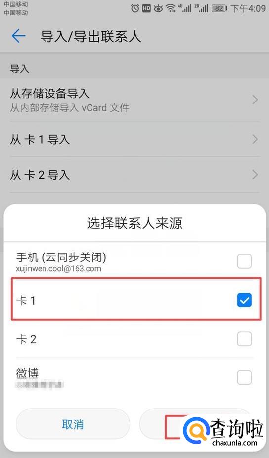 弹出的界面,我们点击卡1,然后我们点击确定就可以了。