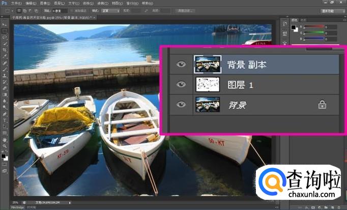 选择“背景”图层,按组合键:Ctrl+J,复制生成“背景副本”图层,并将图层调整到所有图层的上方;
