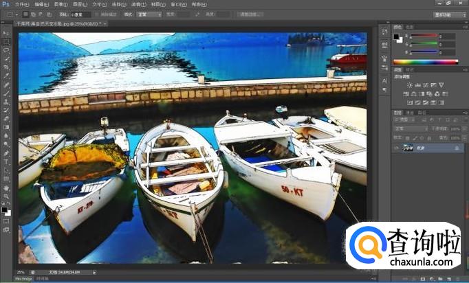 这样就完成了将照片图像制作成钢笔淡彩效果了。
