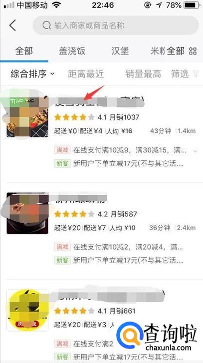 选择好米饭类别后就可以选择商家了,可以选择销量最高或者距离最近等等。