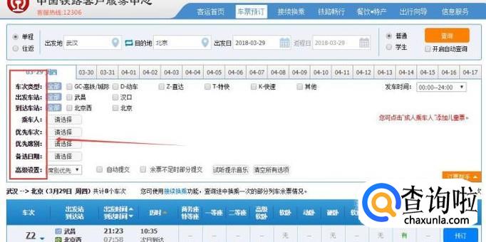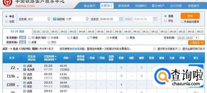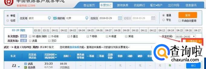 登陆12306官网,点击车票预定,搜索你想要购买的车次