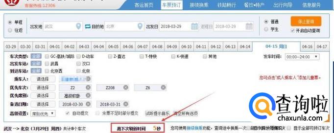 可以看到,离下次刷新时间5秒,意思是每5秒钟就刷新一下车次和座位信息,这就是开始自动抢票了