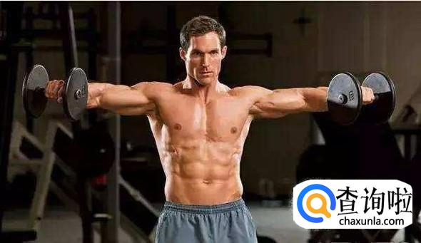 哑铃双臂侧平举。两脚分开与肩同宽,背部挺直,双手握紧哑铃自然下垂,吸气,将哑铃举至与肩同宽,呼气,将哑铃缓慢放下。