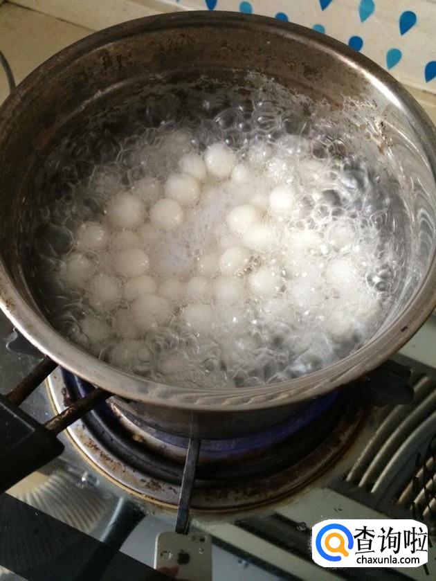 将火转至中火,然后等到小汤圆煮至浮在水面上,再加入米酒,注意不要加入太多的米酒,会让味道变差。
