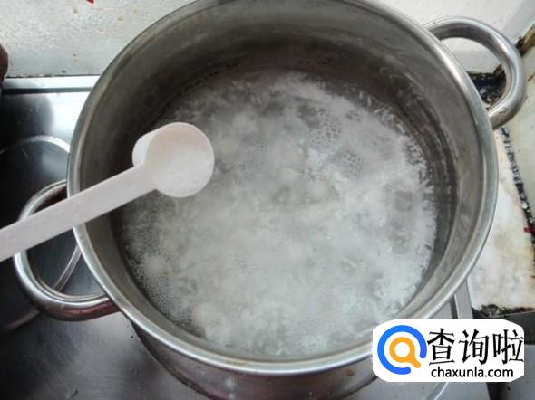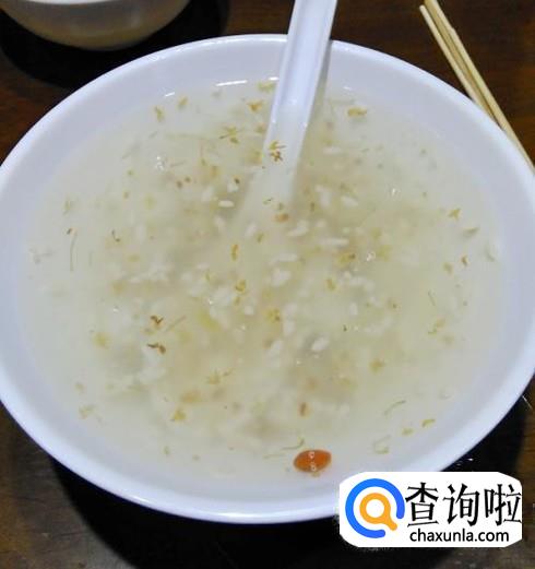 然后煮一分钟左右,再加入桂花干,用汤勺搅拌混匀后就可以盛出来了,根据自己的喜好加入适量的蜂蜜就可以吃了。