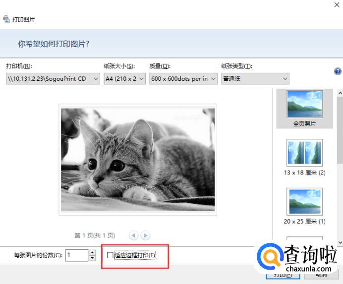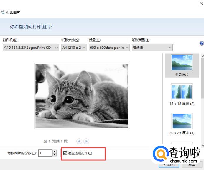 再次进行前两个步骤的操作,来到打印管理面板,在下方找到“适应边框打印”。