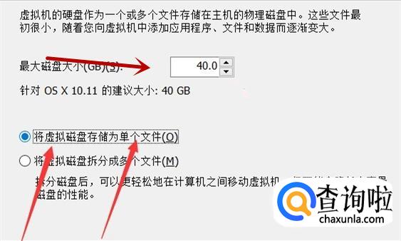 进入界面后,设置虚拟机的最大磁盘大小,将虚拟机的最大磁盘大小设置为40.0,然后建议选择“将虚拟磁盘存储为单个文件”,然后点击下一步,进入下一个界面进行操作。