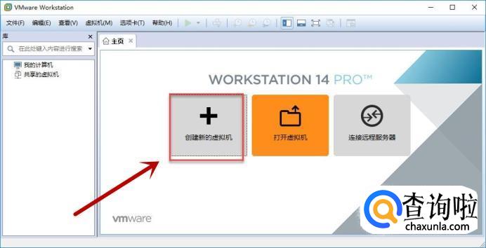 打开安装好的虚拟机软件,进入虚拟机主页面,在主页面中点击页面中的“创建新的虚拟机”选项,其他两个选项,“打开虚拟机”和“连接远程服务器”先不点击,然后进入下一个界面。