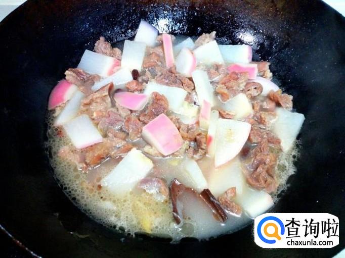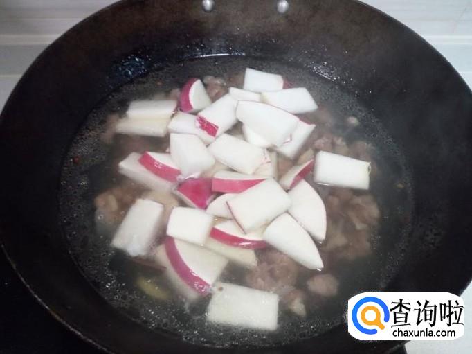 牛肉大约炖一小时左右的时间(用筷子可以插透),放入红萝卜,放入盐,转大火烧开,再转小火慢炖。再炖二十分钟左右的时间,红萝卜炖烂糊后,放入味精,关火。