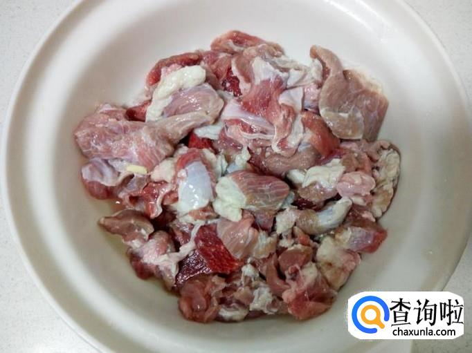 牛肉放入水中浸泡,去除血水。然后用水清洗干净,控干水分,切成块。