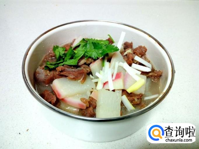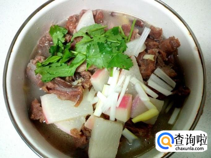 把炖好的红萝卜牛肉盛入碗中,撒上些香菜,葱,即可。