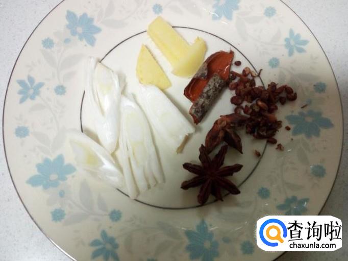 切好葱,姜,准备好花椒,八角,桂皮,备用。