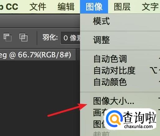 要修改图片的像素,尺寸,我们点击菜单上的‘图像’,并点击下拉菜单的‘图像大小’