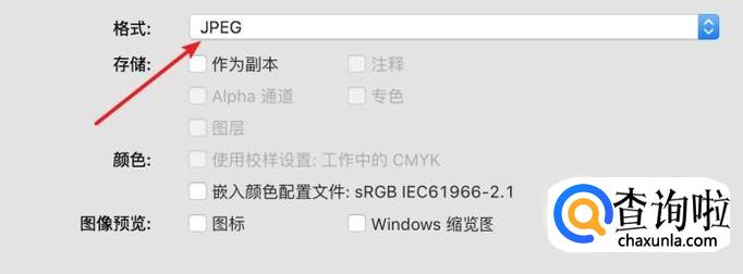 弹出存储窗口,图片本来是jpeg格式的,如果要修改图片格式,点击格式下拉框,