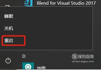 把该.dll名称的程序下载好后,在电脑桌面点击菜单,找到重启,点击它。