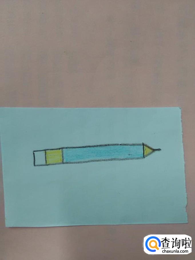 先用黑笔在纸上画一个细细的长方形,表示笔杆。