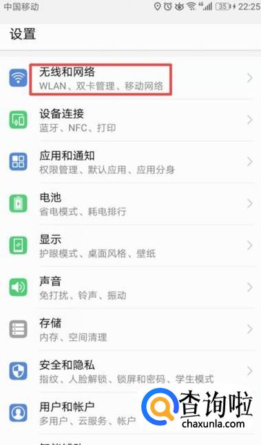 弹出的界面,我们点击无线和网络;