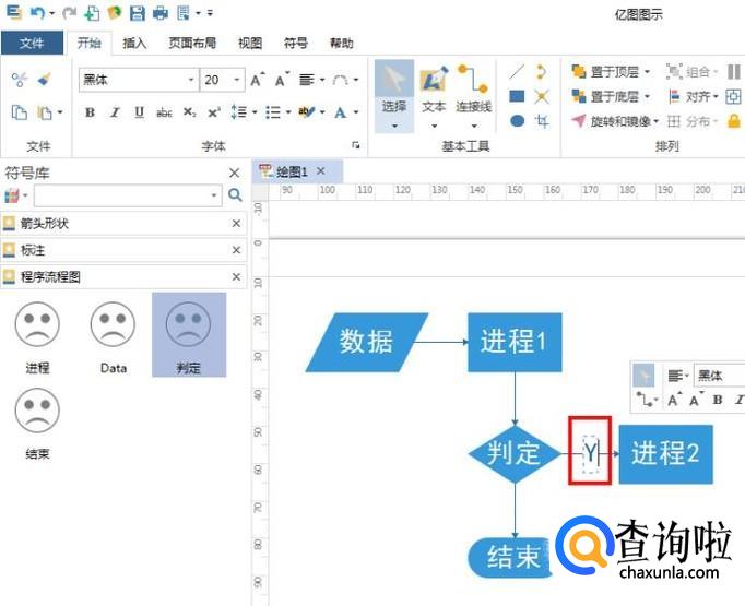 块与块之间的箭头上也是可以添加文字的,双击输入所需的内容即可,同时也有文字工具栏设置文字属性;