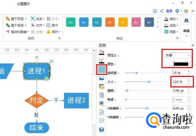 为了显现立体的效果,块可以添加阴影效果,主要调整类型、颜色、大小等属性;