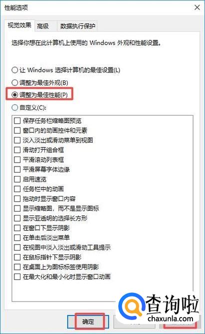 弹出的界面,我们点击选择调整为最佳性能,之后我们点击应用,然后点击确定,这样我们玩游戏就不会卡顿了。