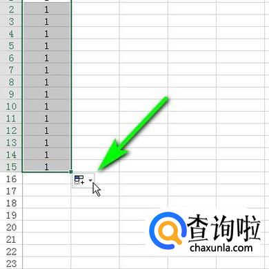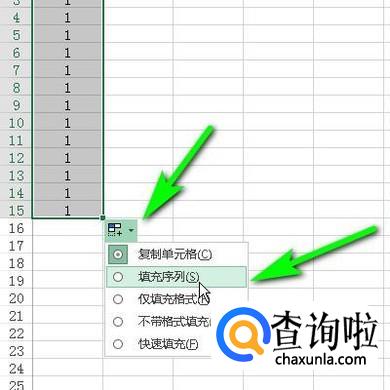 如图所示,鼠标点击最后一个单元格右侧的按钮,弹出的菜单中再点:填充序列