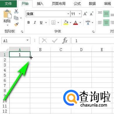 比如,在A1输入数字1;鼠标再放在A1右下角填充柄这里,如图所示。