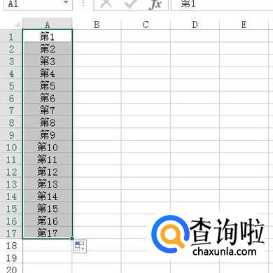 比如,在A1中输入:第1;鼠标放在A1单元格右下角的填充柄上