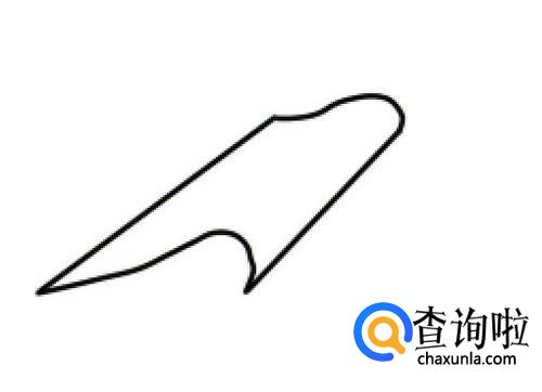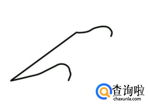 在第一条斜线的下方,往右错开一点,画一条折线,一直画到两个钩子的连接线的下方停笔,表示纸张对折后的下半部分。