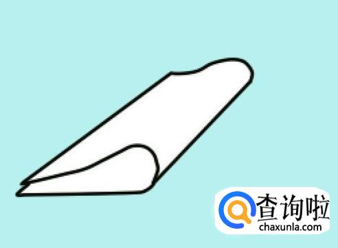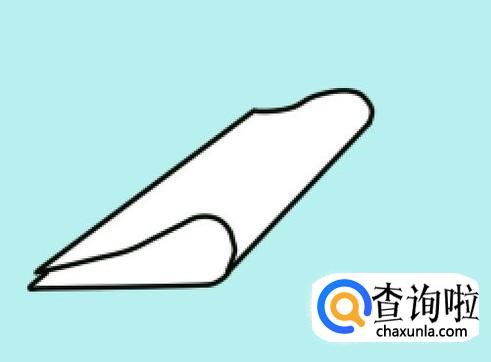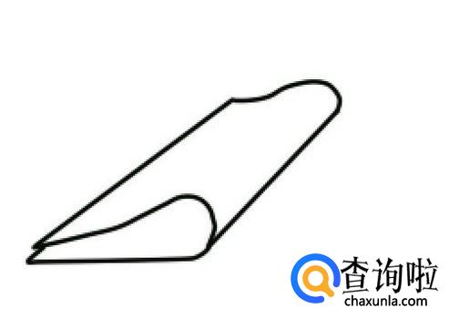 从斜线的两端向右各画一条钩状的曲线,表示纸张弯曲的样子。