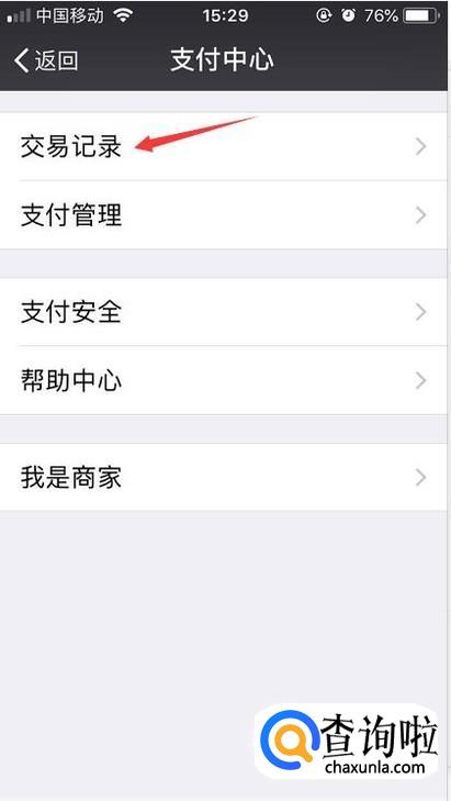 进入图标后会看到有支付记录、支付管理等等的功能,我们点击交易记录。