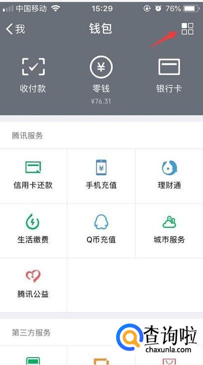 接着点击钱包右上角的正方形图标。
