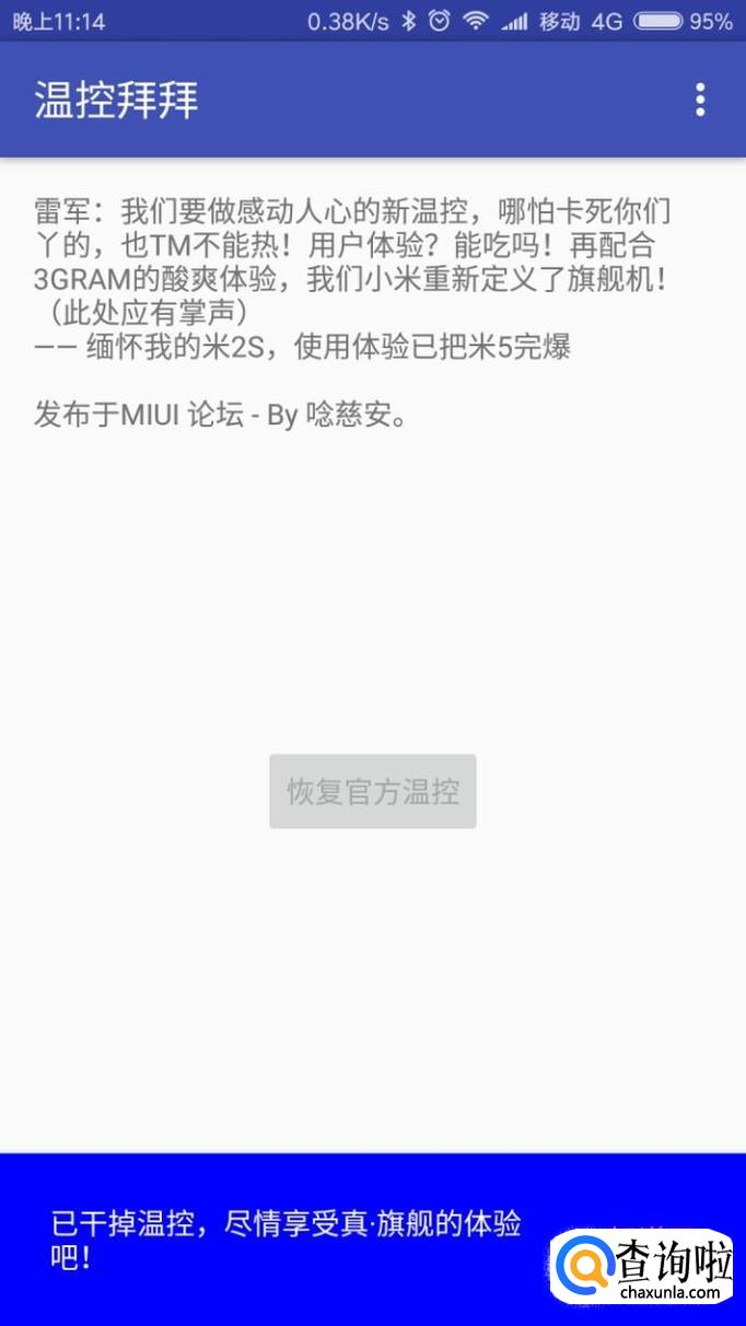 众所周知,小米官方的温控温度标准是很低的,大约40度就会降频到账手机卡顿,解除温控可以提高手机性能。