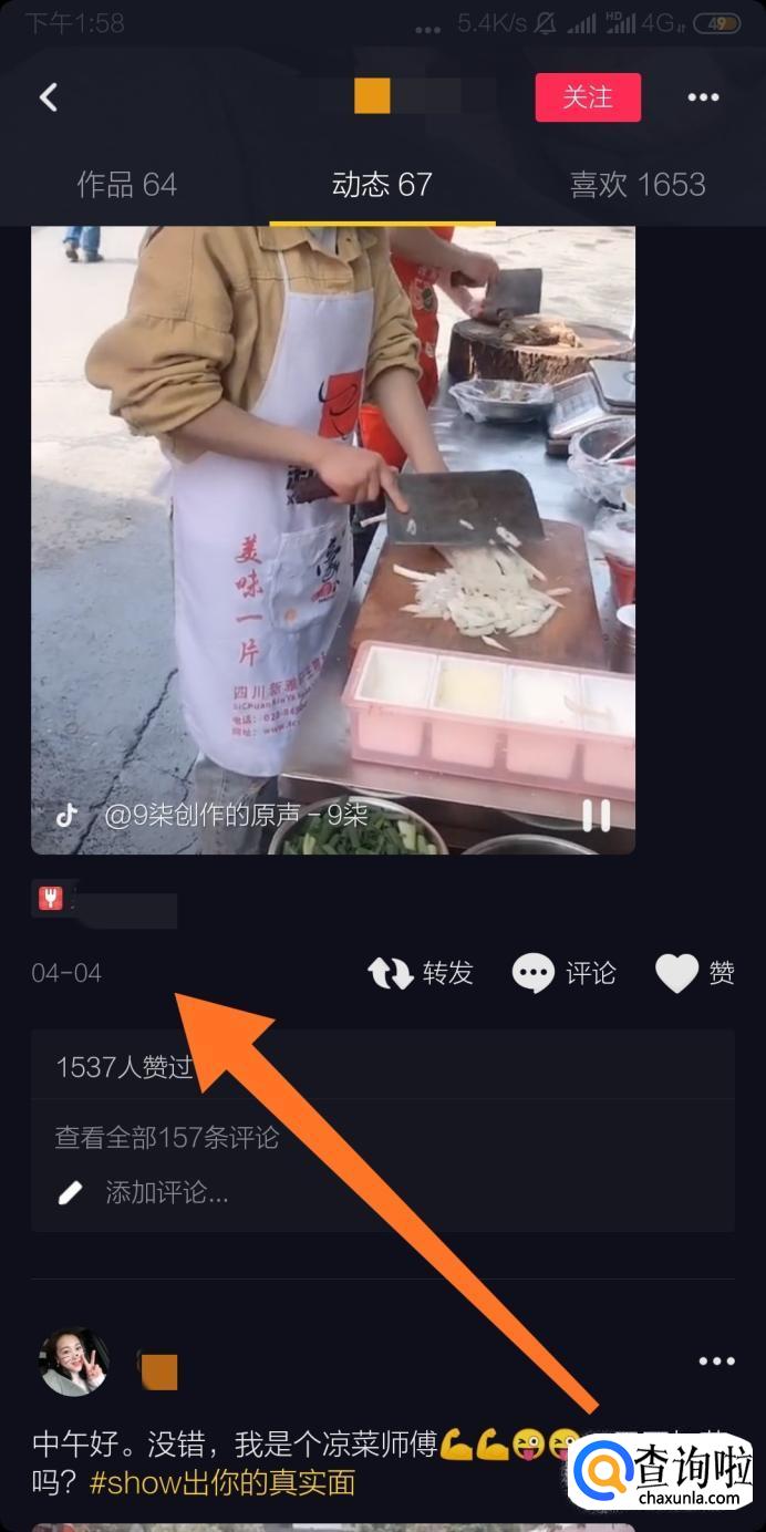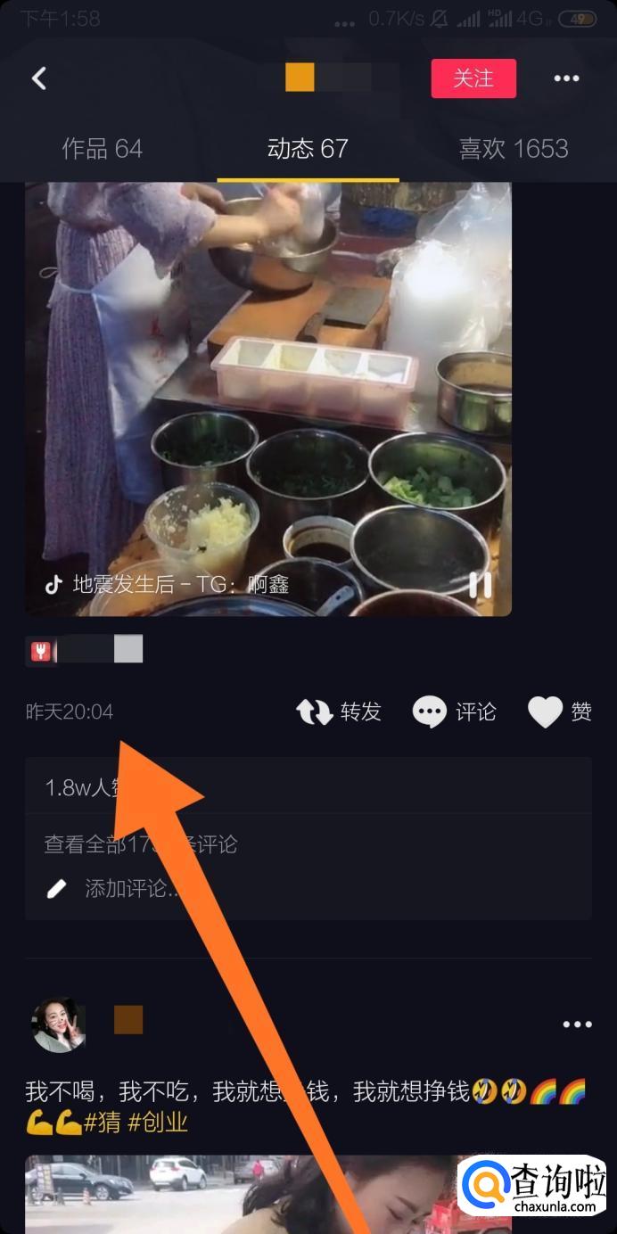 如果想知道抖音短视频的发布时间,可以进入发布者的动态页,找到对应的视频,就可以看到发布时间了。