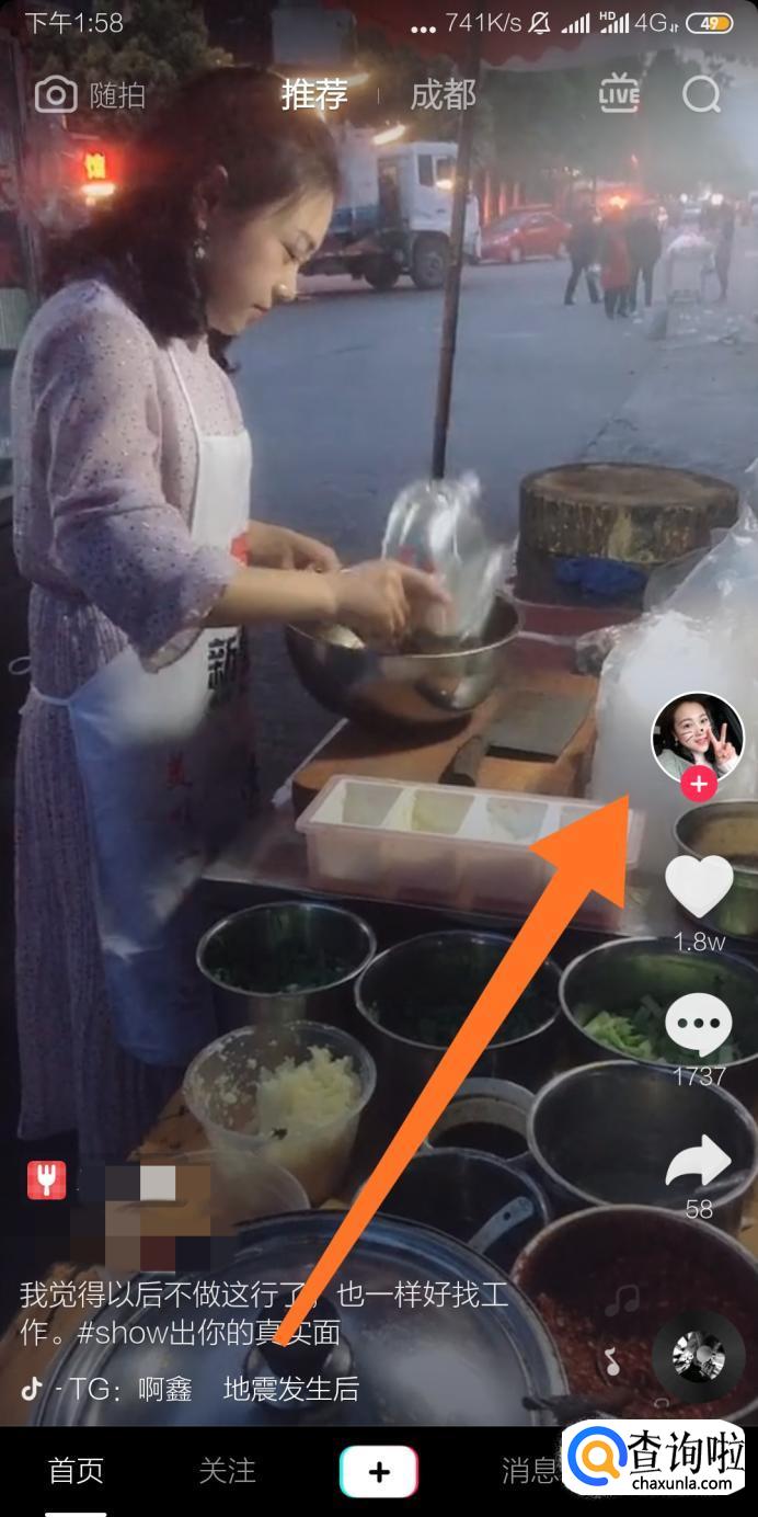 刷到喜欢的抖音短视频后,点击视频发布者的头像就能够进入视频发布者的个人主页。