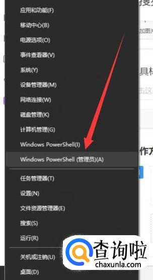 打开电脑,右击Windows按键,选择图示位置按键,点击并进入,如图所示。