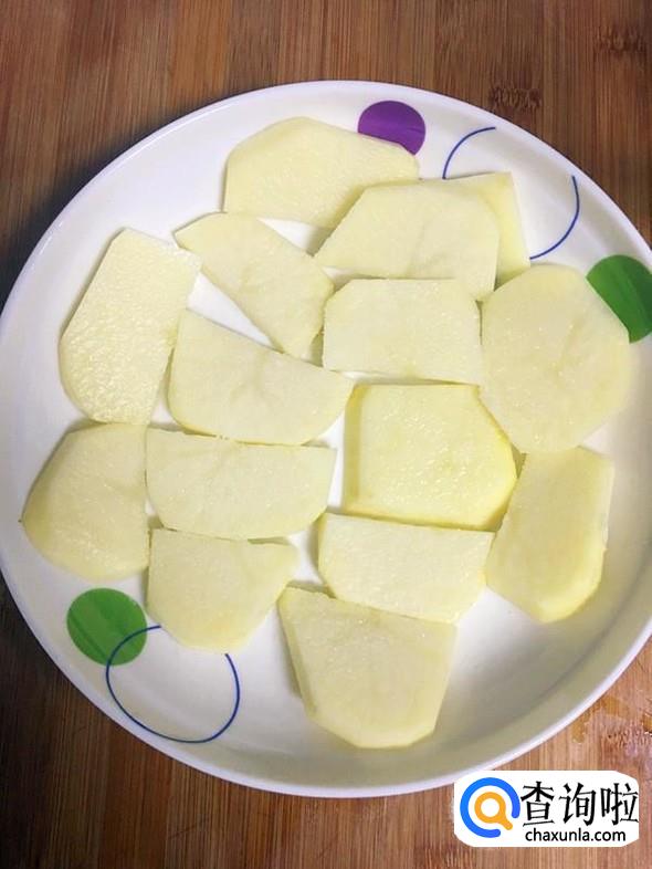 土豆洗净后去皮,切片。