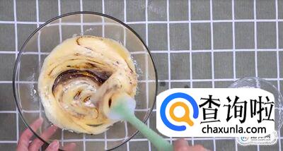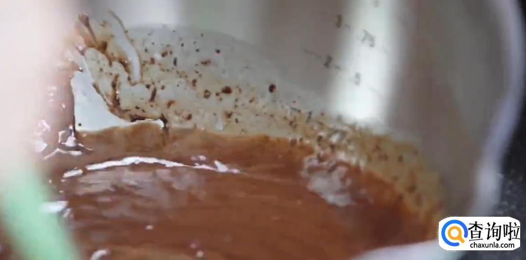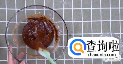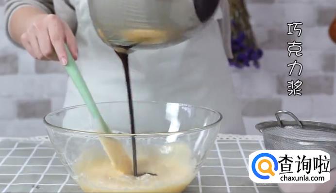 将巧克力酱倒入蛋糊中,搅拌均匀。