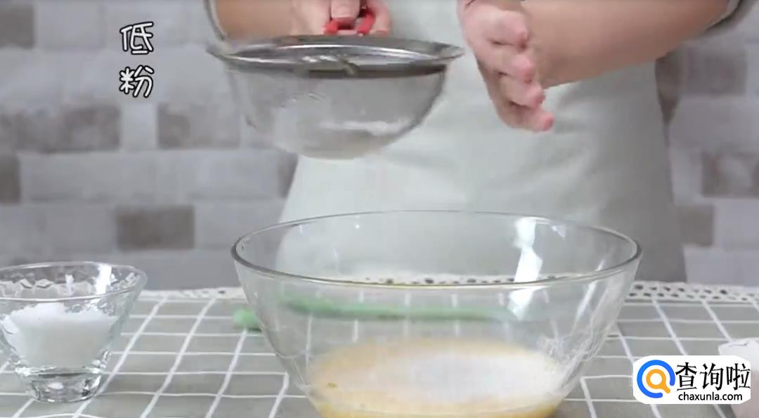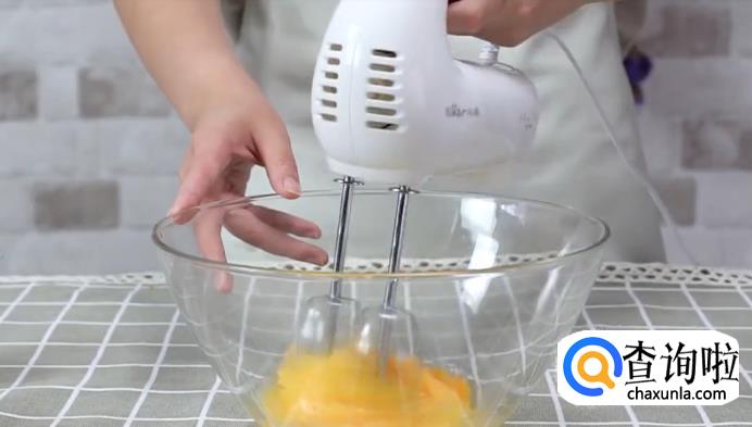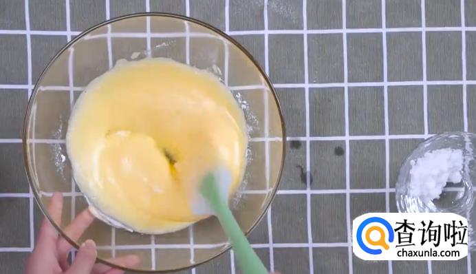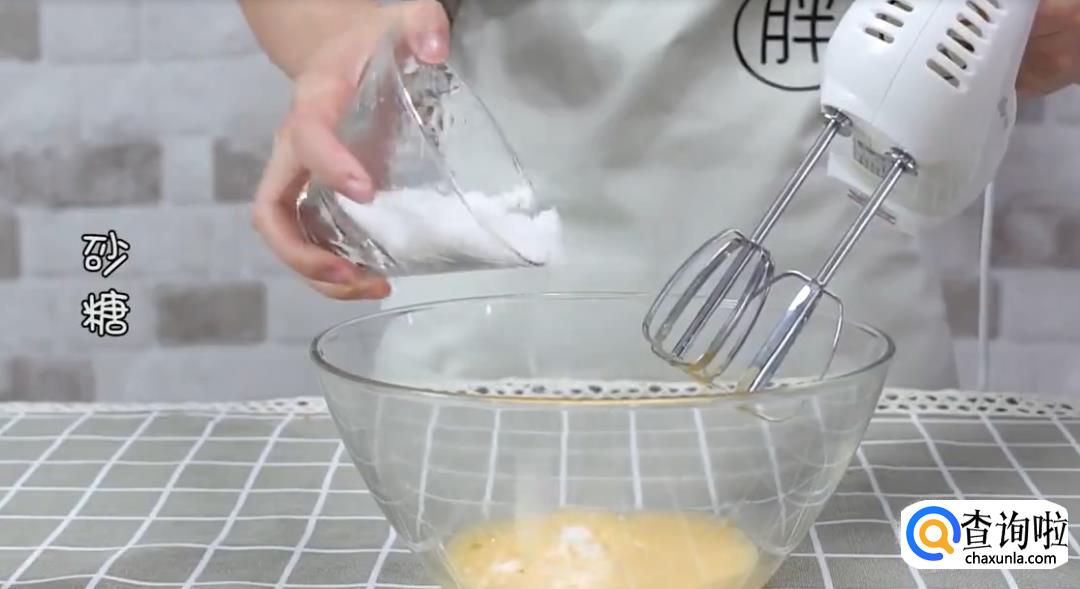 打两个鸡蛋,搅拌均匀后加入低筋面粉和白糖,打发搅拌至糊状。
