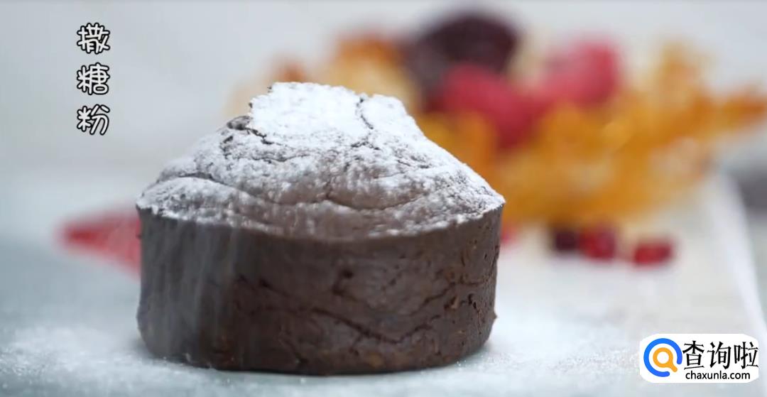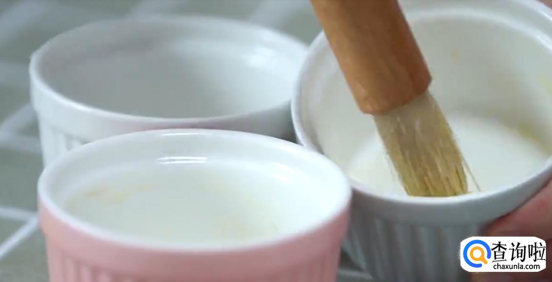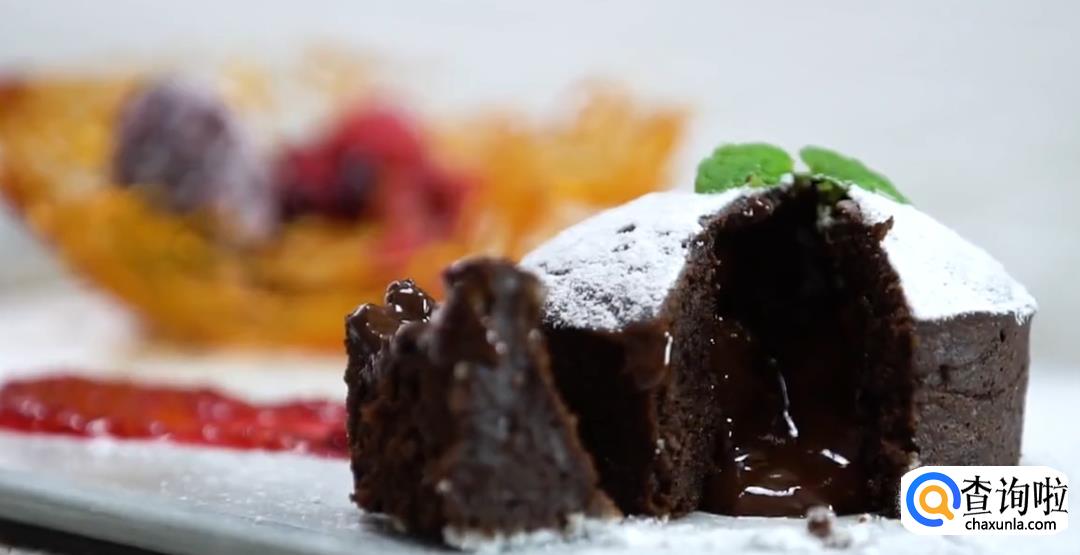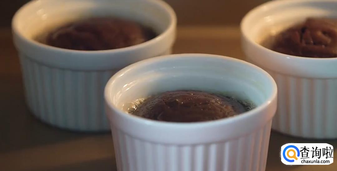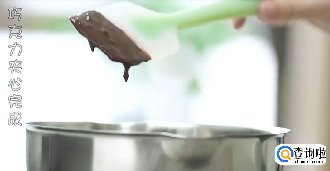 用笔刷在模具上刷上黄油,然后将巧克力酱铺在模具壁四周,放上冻好的巧克力夹心,再次盖上巧克力酱。