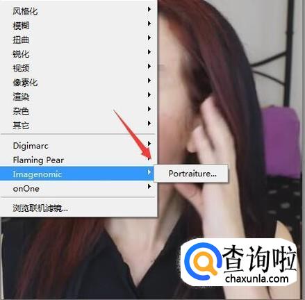祛除好痘痘之后再在滤镜菜单里找到Portraiture滤镜,如图所示: