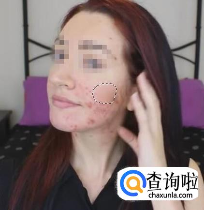 使用修补工具我们在人物的面部上画出选区,然后移动到皮肤较好的地方可以看到皮肤上的痘痘就消失了,如图所示:
