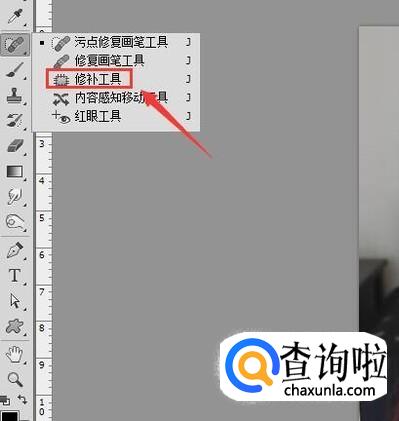 点击污点修复工具在其下拉列表里找到修补工具,如图所示: