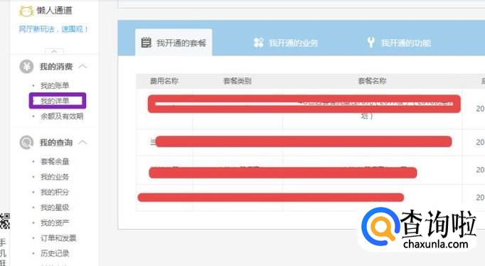 登陆后,我们在左边找到我的详单并点击打开;