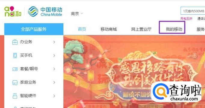 弹出的界面,我们点击我的移动;