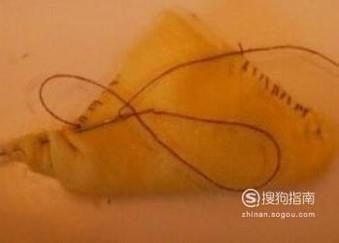 用针线把三角形的两个侧边缝好,只留顶部一个小口,以便放香料。